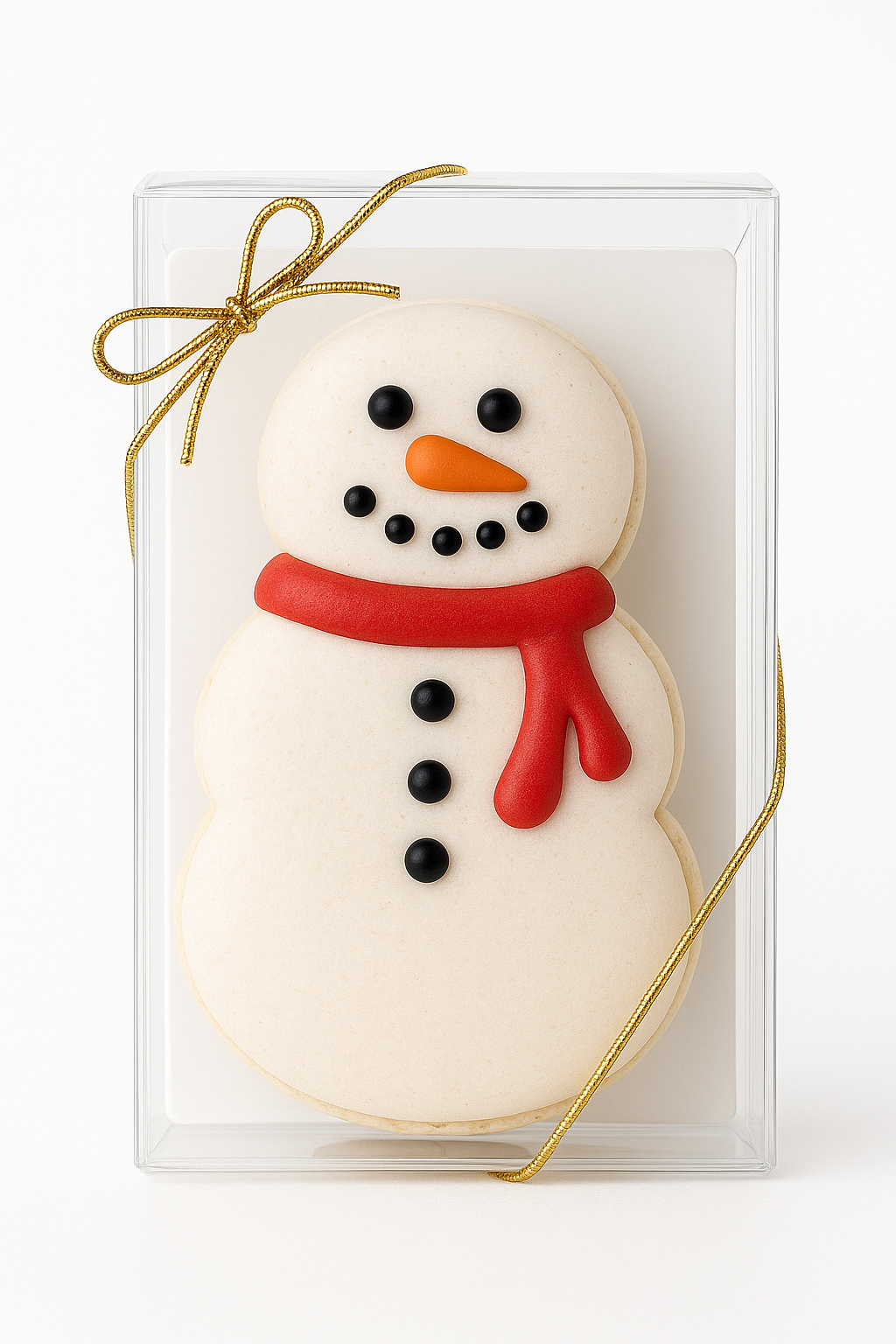 Each SnowMac arrives individually wrapped in a crystal-clear resealable cello flap bag, resting on a 2.5" x 3.25" glossy white confectionery board — perfect for gifting or party favors.