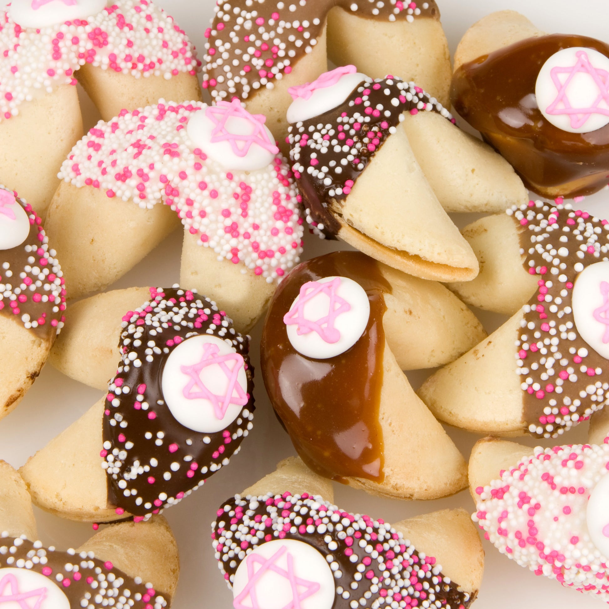 Celebrate a sacred milestone with Lady Fortunes’ Bat Mitzvah Fortune Cookies, a meaningful treat for this special day! Handcrafted and kosher, these fortune cookies are dipped in your choice of premium chocolates—dark, milk, or white—or opt for an assortment to enjoy a variety of flavors.