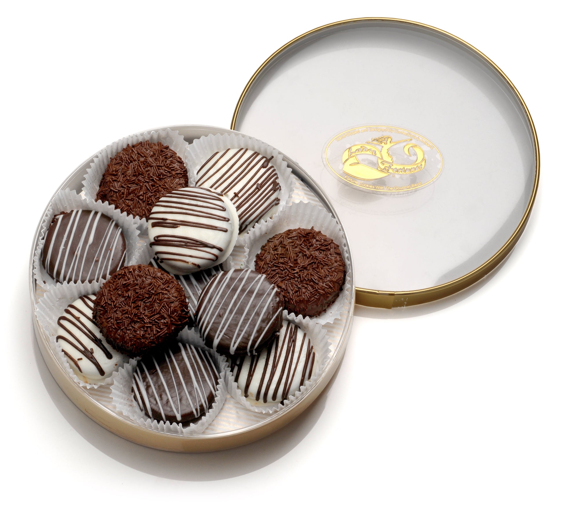 Indulge in the timeless charm of Lady Fortunes’ Classic Chocolate Hand Dipped Sandwich Cookies! Each Chocolate Creme Sandwich Cookie is meticulously hand-dipped by our skilled artisans in your choice of premium chocolates—dark, milk,  or white.
