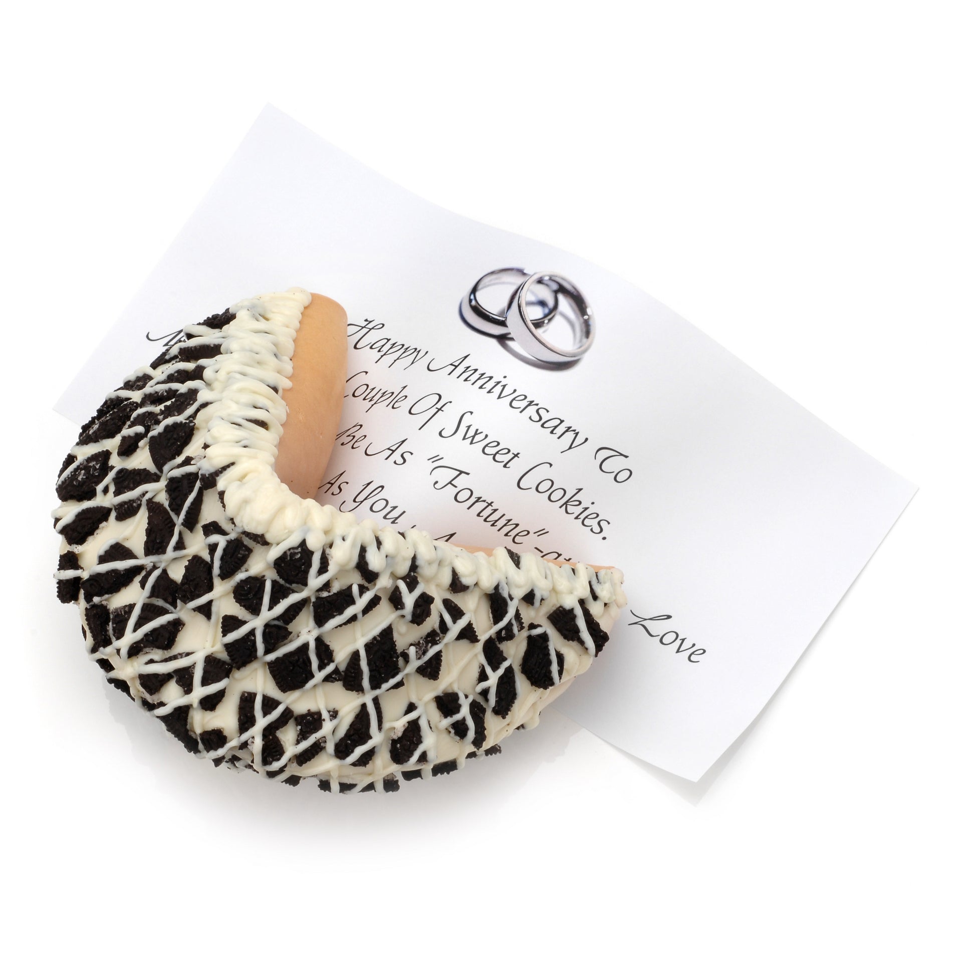 Inside, you'll find a customizable fortune stretching nearly one foot long, making every bite even more special. Looking for an even bigger treat? Try our Super Giant Fortune Cookie, measuring approximately 9" x 9" x 8.5"—almost the size of a basketball—for a truly unforgettable indulgence!