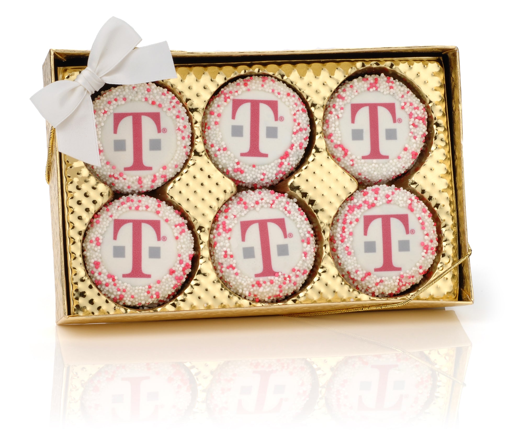Corporate Logo Hand Dipped & Decorated Sandwich Cookie-Gold Windiow Box of 6