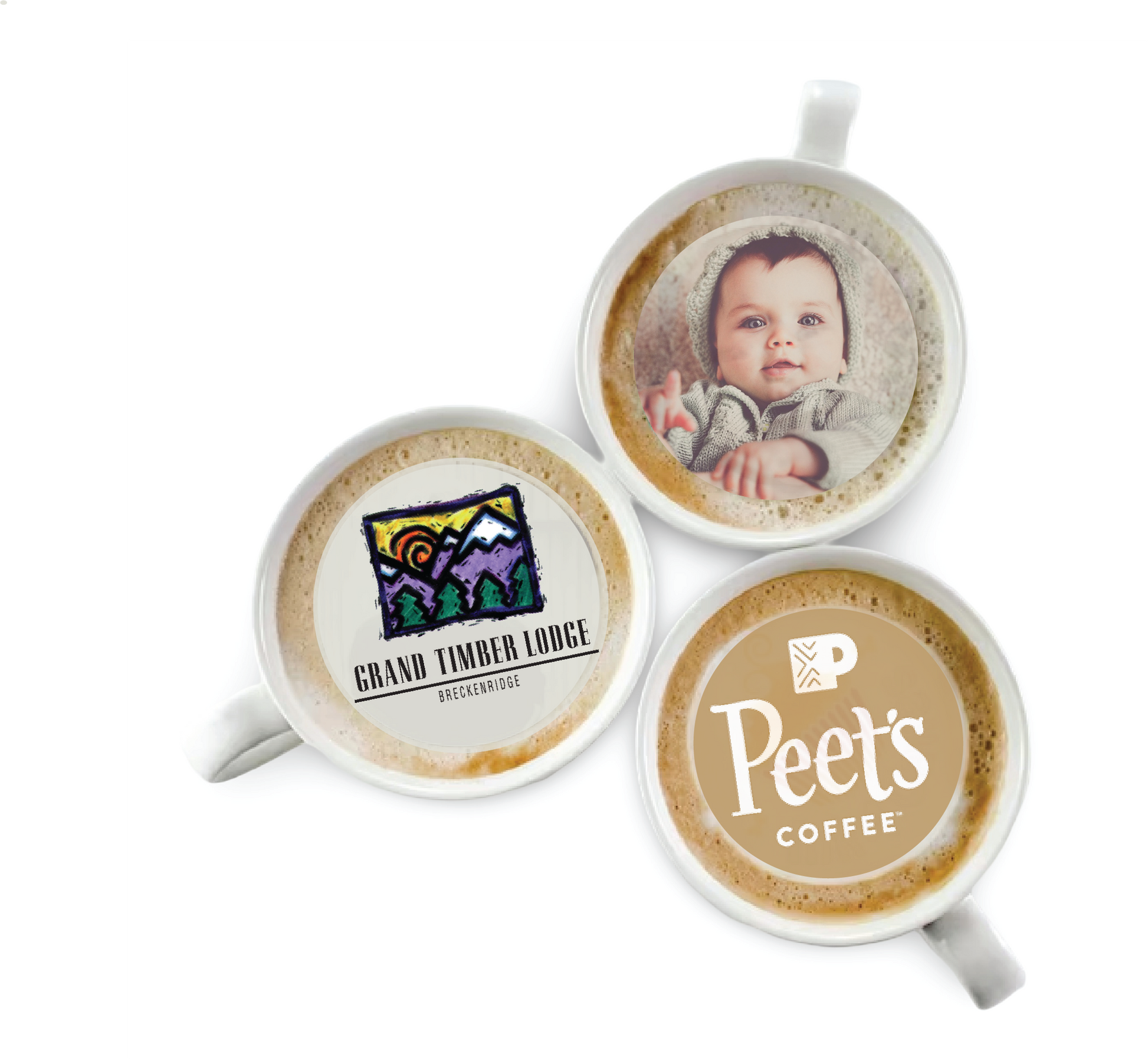 Our drink toppers are made from paper thin fondant sheets and individually wrapped for freshness and quality. They are printed with food-grade edible inks and designed to dissolve smoothly when placed on liquid.