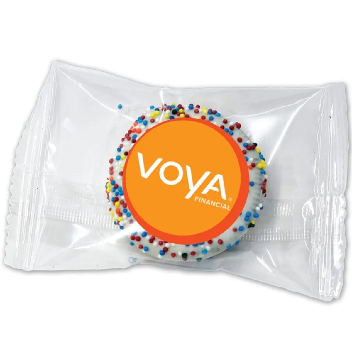 Gourmet Hand Dipped Sandwich Cookie with Sprinkles - Custom 1.5 Round Label