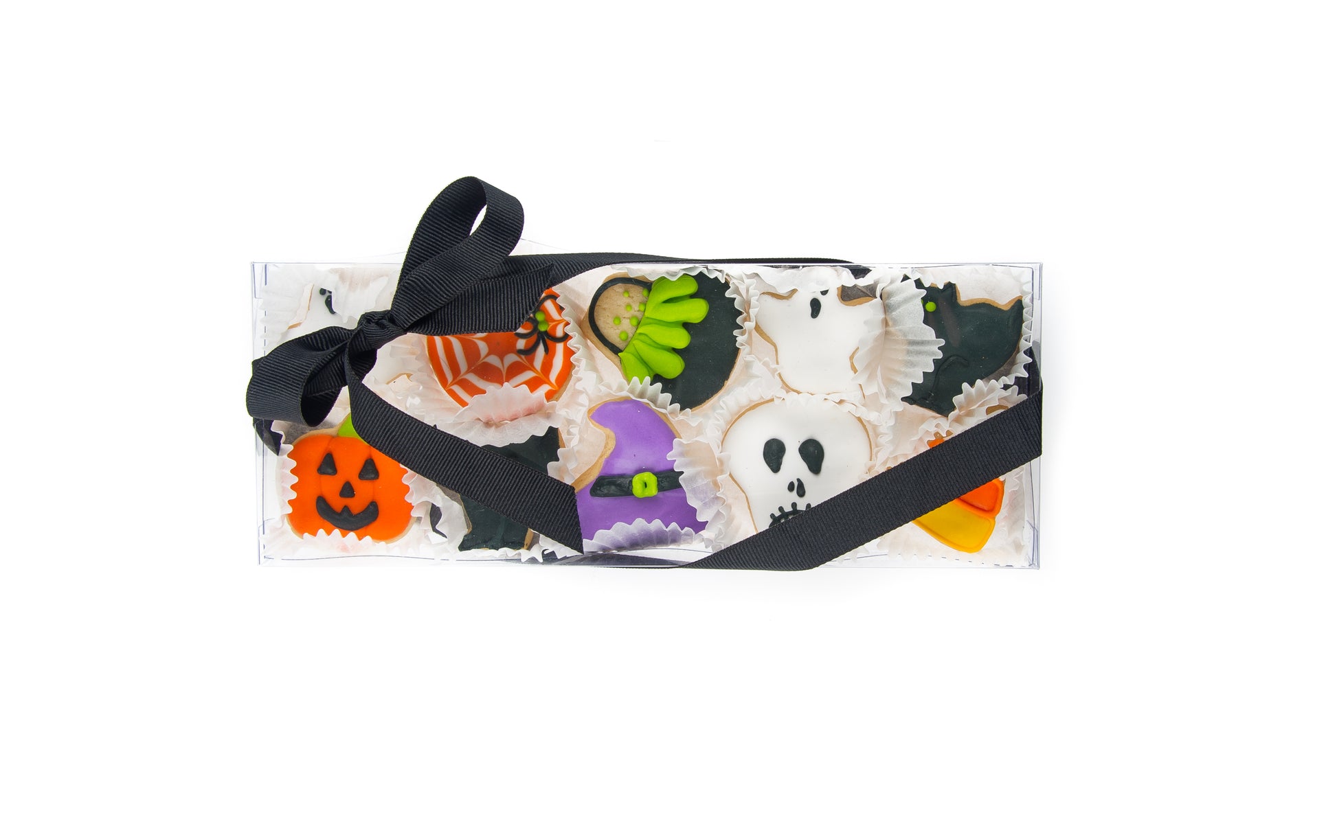 Halloween Celebration Mini Iced Sugar Cookies -Clear Gift Box of 10