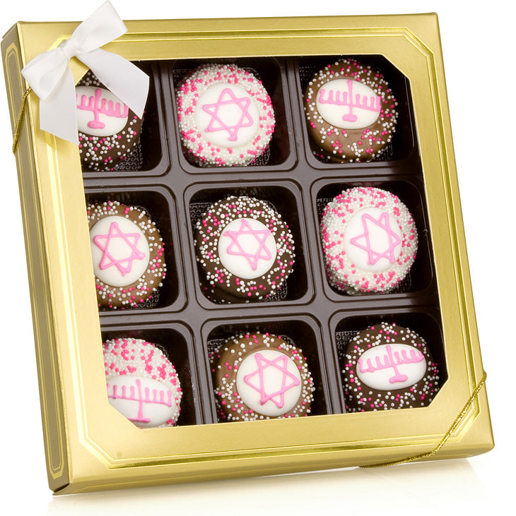 Hanukkah Pink Hand Dipped & Decorated Sandwich Cookie- Gift Box