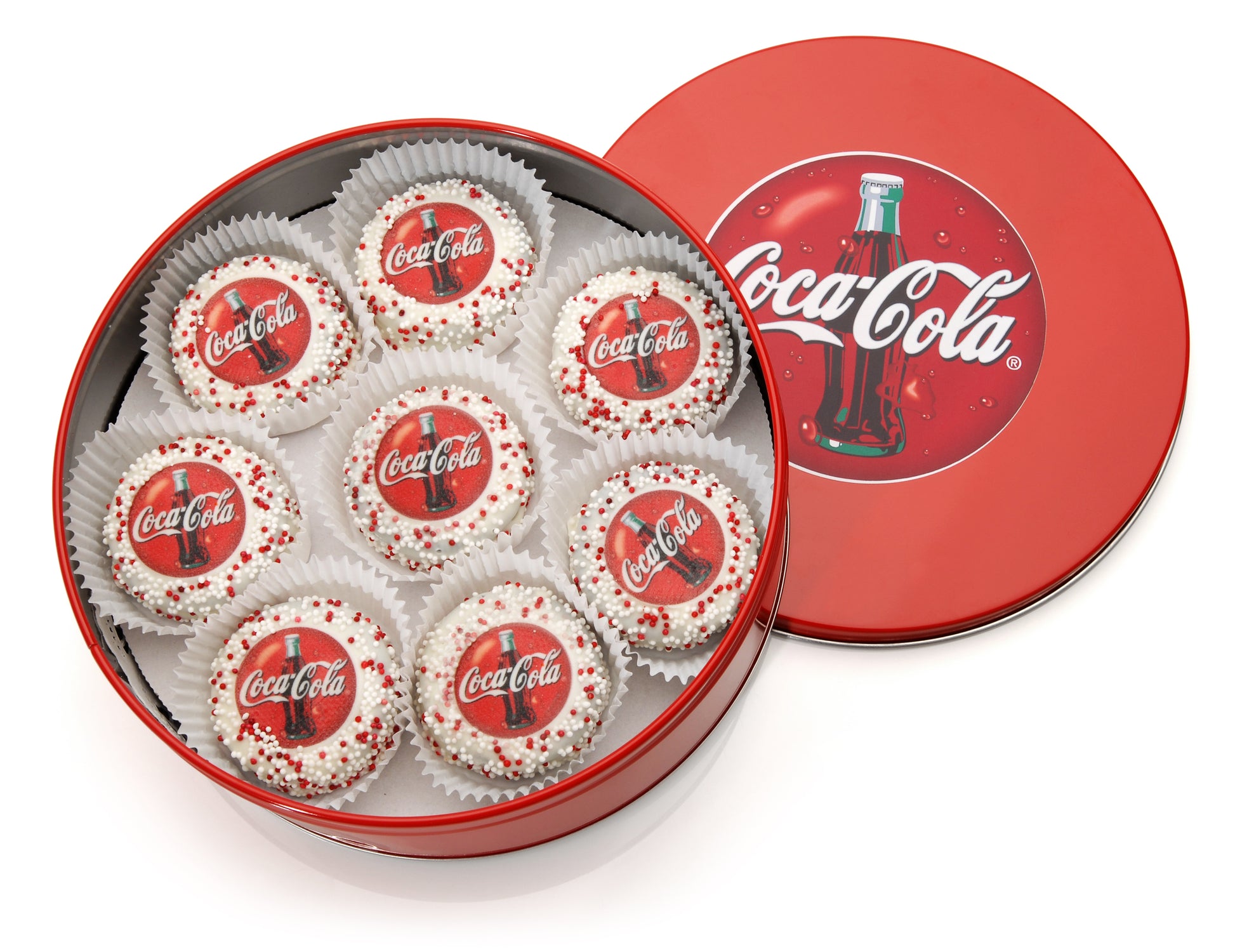 Treat your clients, team, or guests to a stunning tin filled with 16 hand-decorated Logo/Photo Sandwich Cookies—each one dipped in rich chocolate and topped with your custom edible image printed on a smooth sugar sheet in vivid, full-color edible ink.