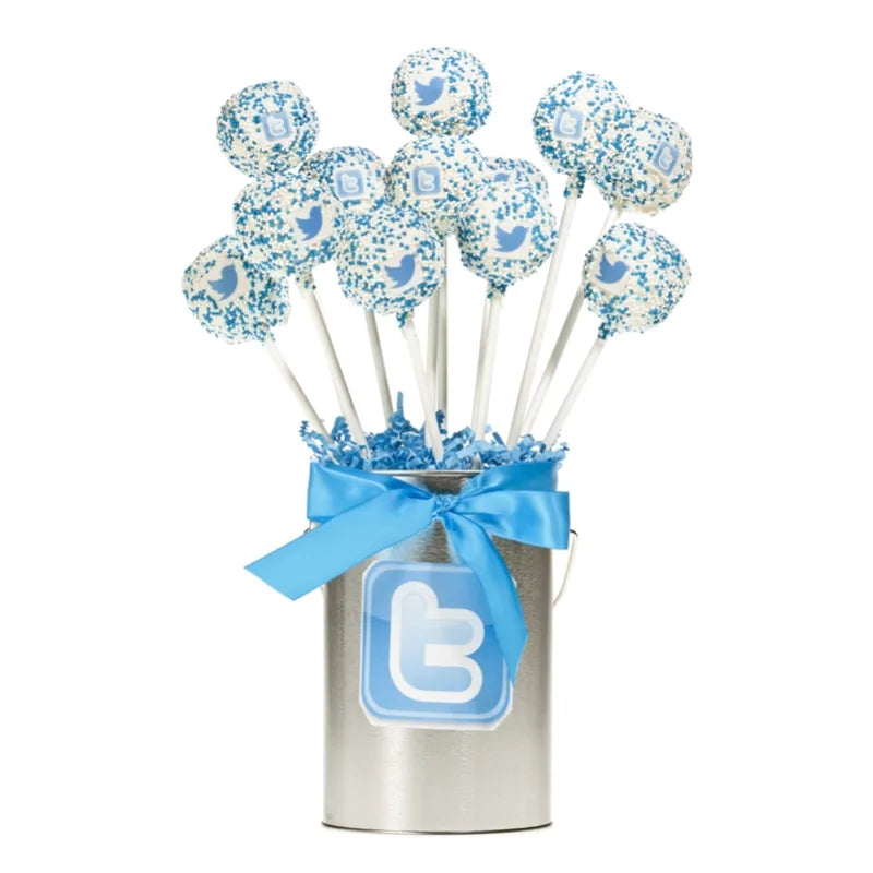 +1 818.993.1277Add a touch of sweetness and fun to any occasion with our Logo Truffle Cake Pops Bouquet of 12! Made with fresh baked cake, creamy buttercream frosting, and hand-dipped in white chocolate, each truffle features an Edible Applique™ with your custom artwork. Packaged in a stylish tin pail, these truffles will be the hit of the party!