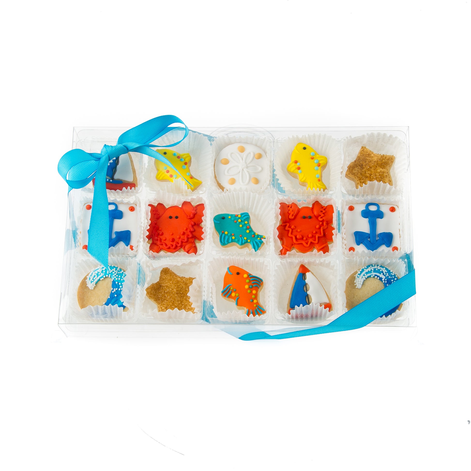 Nautical Celebration Mini Iced Sugar Cookies -Clear Gift Box of 15 pc