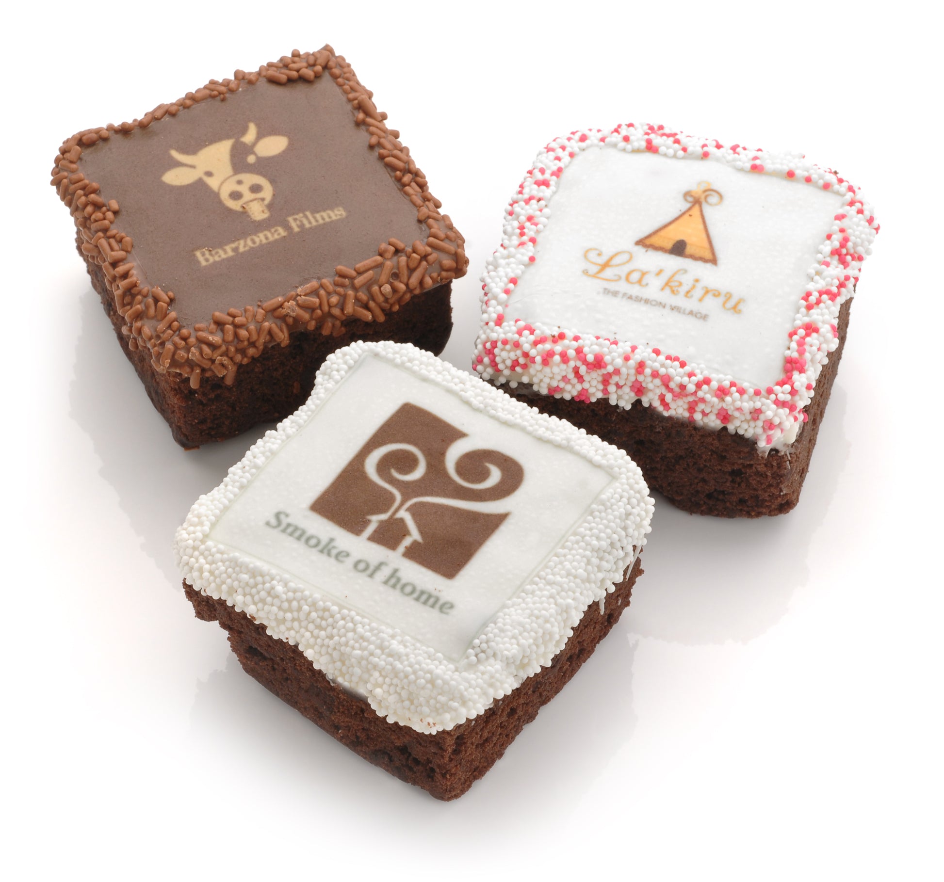 +1 818.993.1277Indulge in our scrumptious ® Chocolate-Dipped Picture Brownies, with your chosen logo or image! These 2.5" square, over 1" thick treats are completely edible and speak a thousand words! Drenched in creamy White Chocolate and adorned with your full-color design (whether it be a photo, drawing, or logo), these Brownies are truly picture-perfect! We add some pizzazz with your choice of sprinkles, creating a "picture frame" effect. These unforgettable goodies make great Party Favors, Wedding Favors, and more! Each one is individually wrapped in clear cellophane and sealed for freshness, then beautifully packaged in our glossy White Gift Boxes and tied with elegant satin ribbon.
