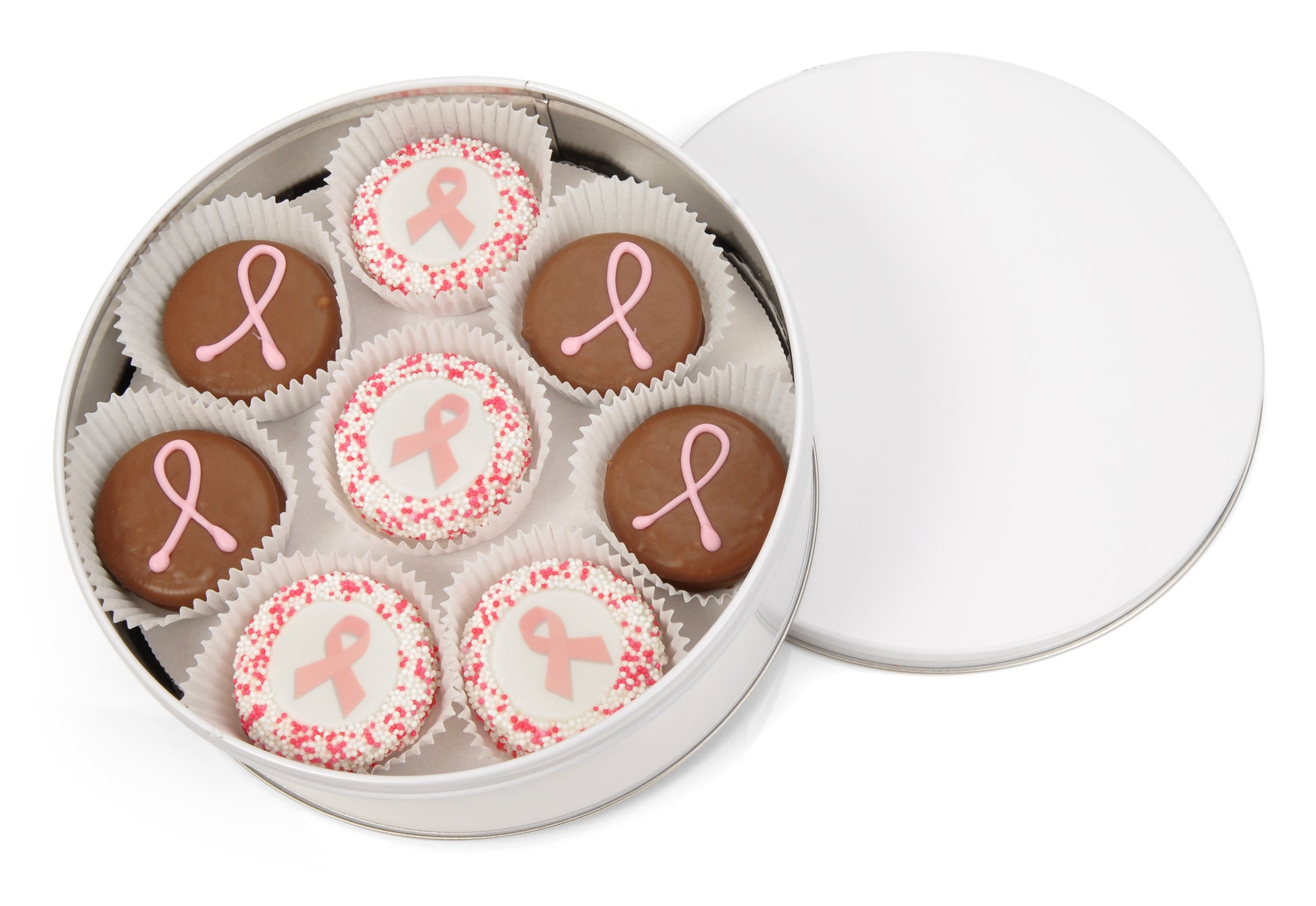 Pink Ribbon Hand Dipped & Decorated Sandwich Cookie- Tin of 16