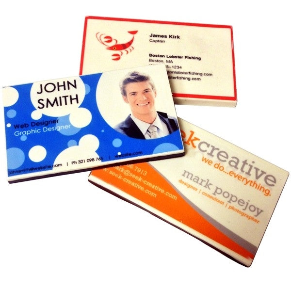 Send in a PDF-file of your business card layout so we can perfectly match it to your non-edible cards, or have our Confectionery Artisans create a custom layout for you!(business card layout will look like those shown on our web site)