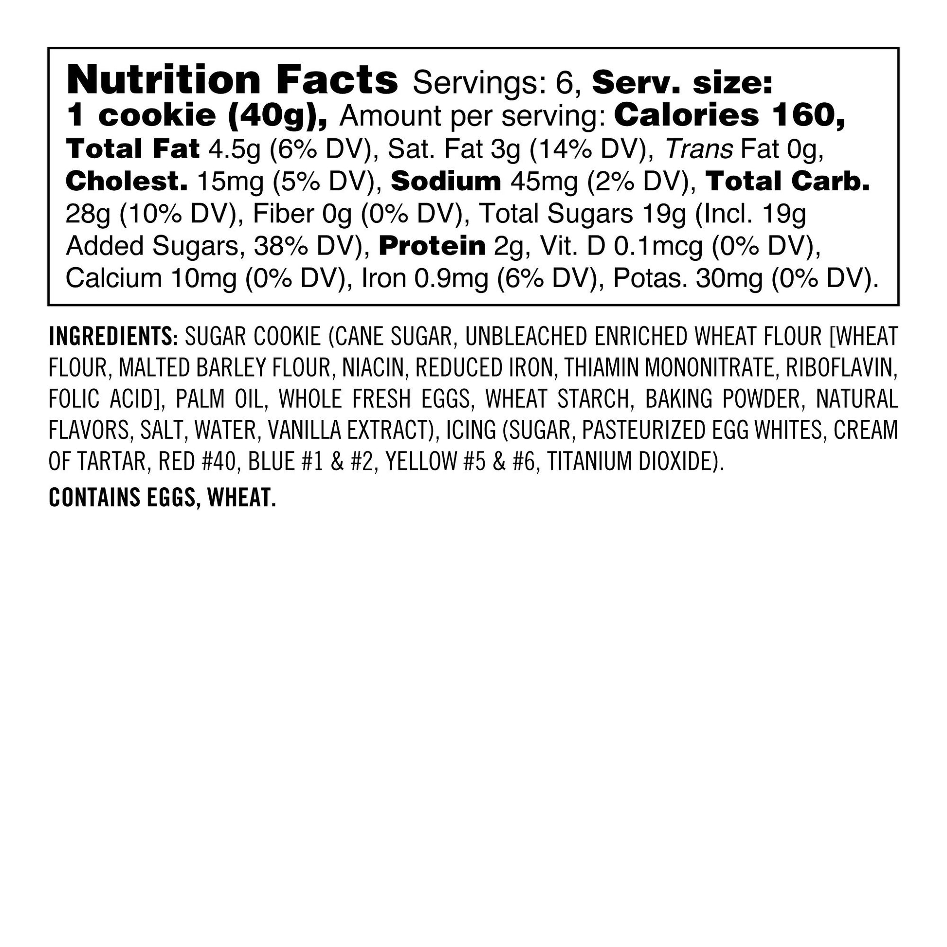 Icing: Sugar, pasteurized egg whites, cream of tartar, FD&C food colors (Red #40, Blue #1 & #2, Yellow #5 & #6, titanium dioxide).